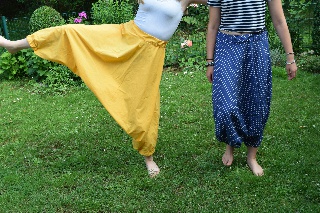 Dieser Schnitt scheint gut zu funktionieren, die kleinere Größe sieht auch ohne Pailetten Aufnäher schon viel versprechend aus! Jetzt versuch ich mich an den nächsten beiden Größen und probier sie morgen und übermorgen mal mit Nähschülerinnen wegen der Passform an. Wenn das auch noch gut gelaufen ist, dann hab ich den Schnitt gefunden 🙂